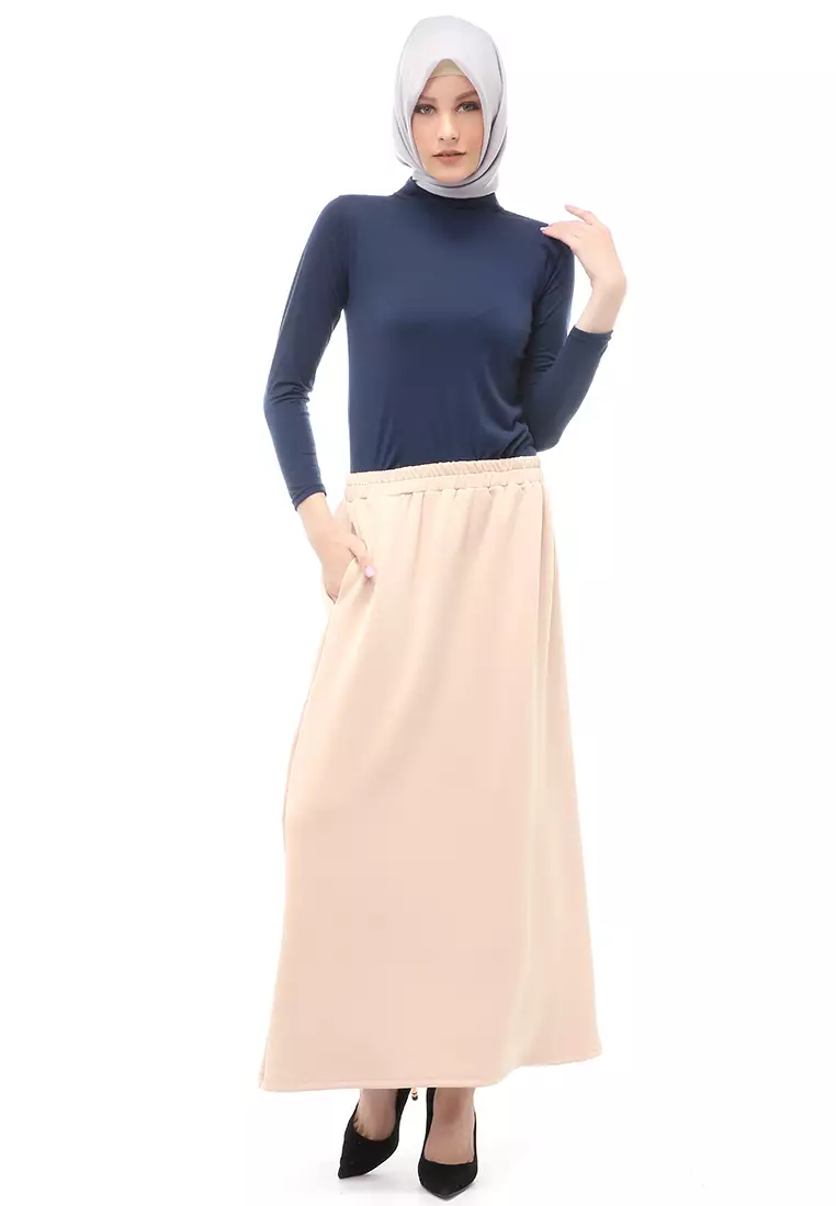 Rok Panjang Muslimah Polos Bawahan Wanita Regular Fit All Size - Beige