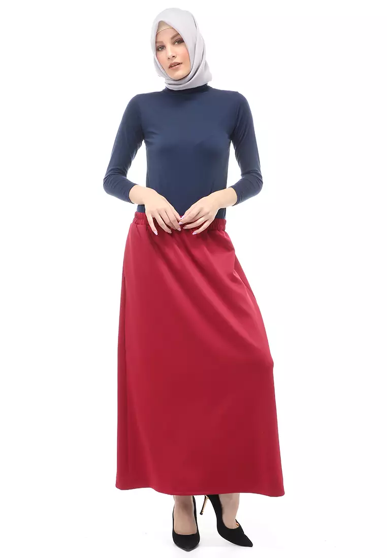 Rok Panjang Muslimah Polos Bawahan Wanita Regular Fit All Size - Maroon