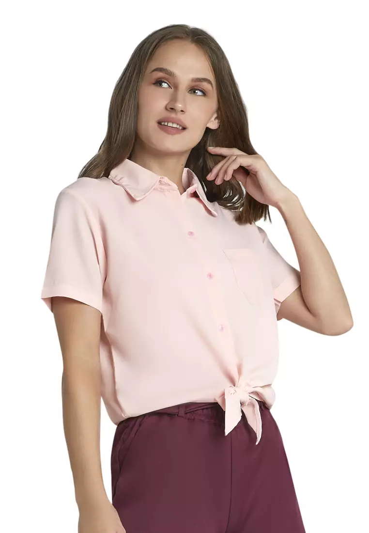 Roseanne Blouse Short Sleeve Motif Solid Atasan Baju Wanita Casual - Salem