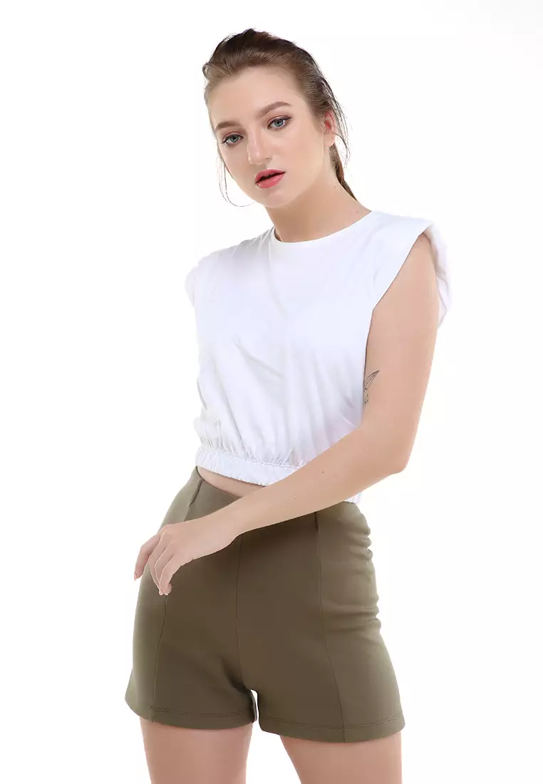 Sakya Tshirt Short Sleeve Top Padded Motif Polos Atasan Wanita Crop Regular fit - White