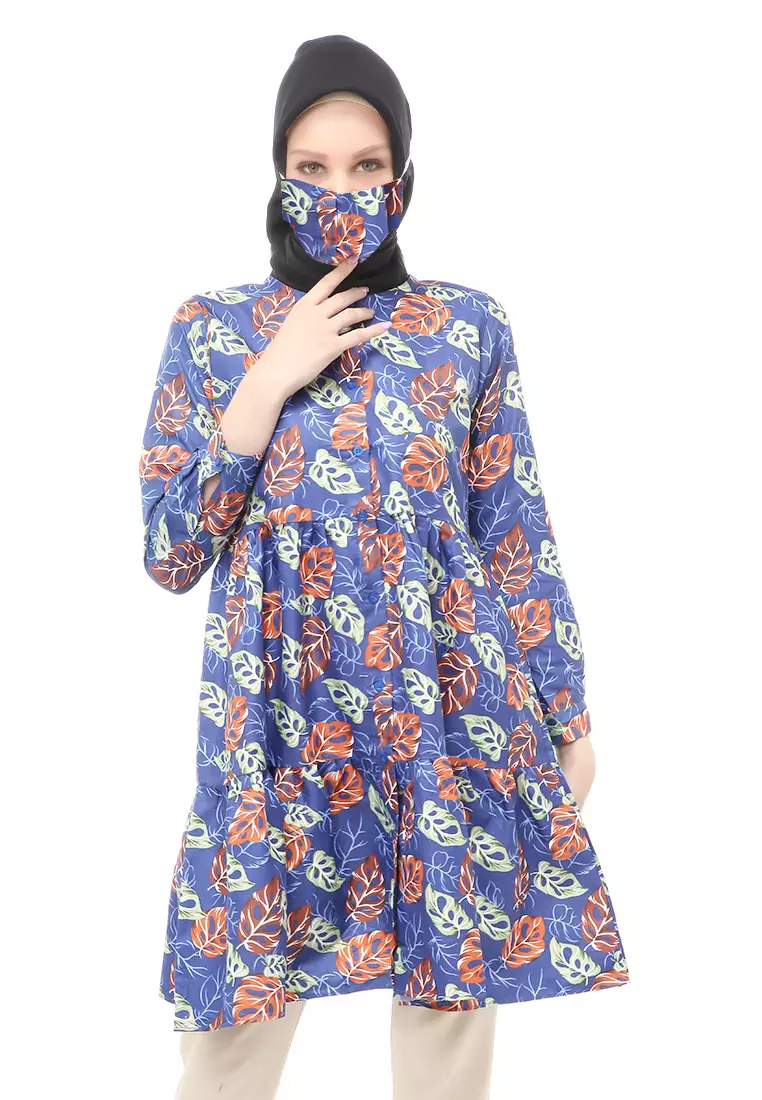EvernoonSania Tunik Muslimah Atasan Wanita Long Sleeve Free Face Mask Premium Quality - 10 Navy324000.00129000.00
