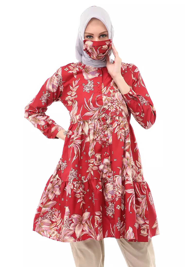 Sania Tunik Muslimah Atasan Wanita Long Sleeve Free Face Mask Premium Quality - 6 Maroon