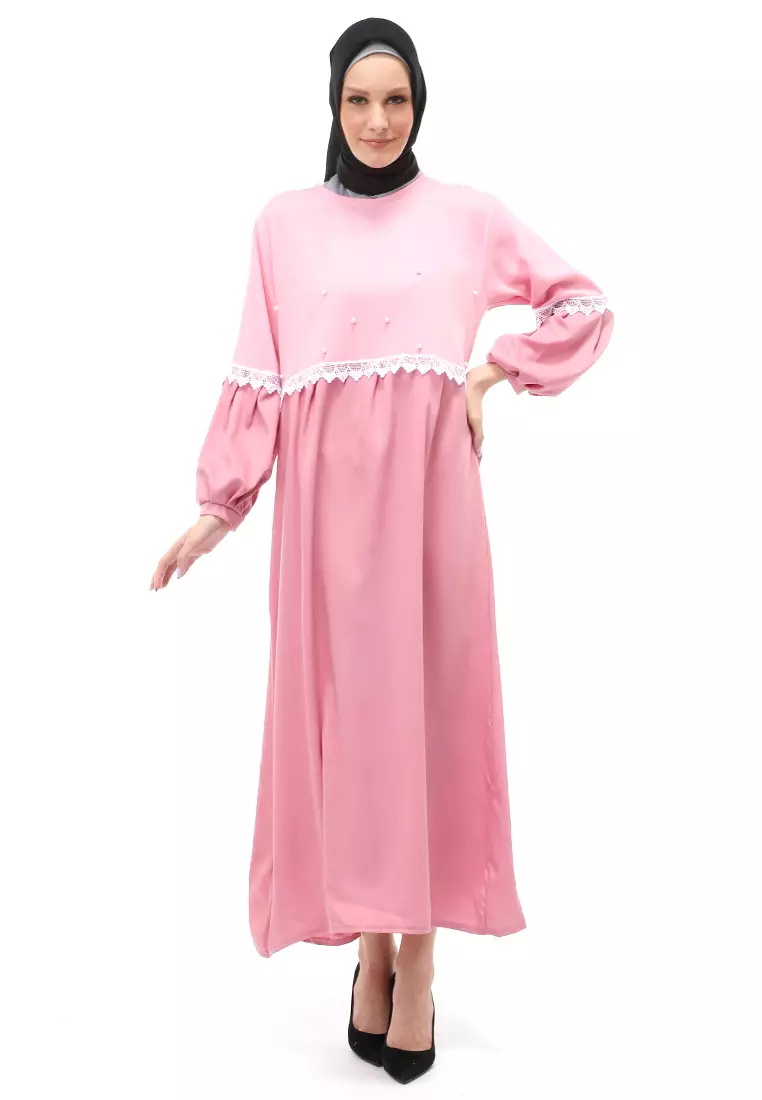 Sarinah Gamis Muslimah Panjang Atasan Wanita Motif Mutiara Regular Fit - Pink