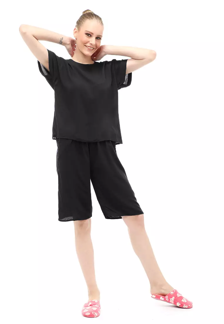 Setelan Wanita Lengan Pendek Design Simple Casual Relaxed Fit - Hitam