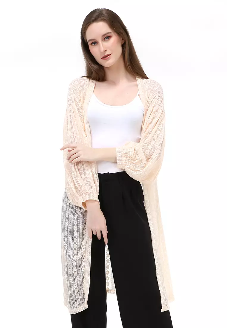 Shevia Cardigan Long Sleeves Wanita Design Elegant Atasan - Beige