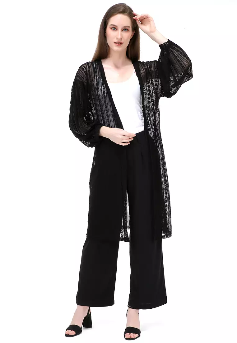 Shevia Cardigan Long Sleeves Wanita Design Elegant Atasan - Black