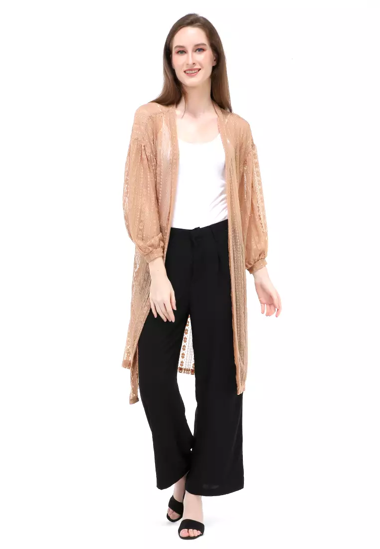 Shevia Cardigan Long Sleeves Wanita Design Elegant Atasan - Khaki
