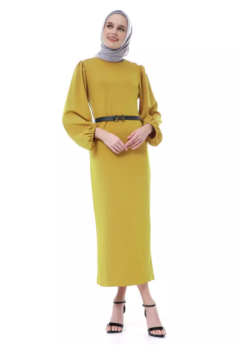 Shima Dress Fashion Muslimah Wanita Long Sleeve Free Belt Premium High Quality - Kuning