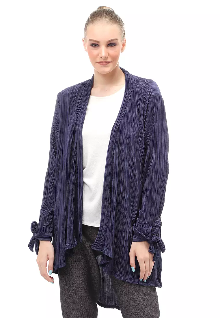 Sunniva Outerwear Wanita Long Sleeves Motif Plisket Model Asimetris Relaxed Fit - Navy