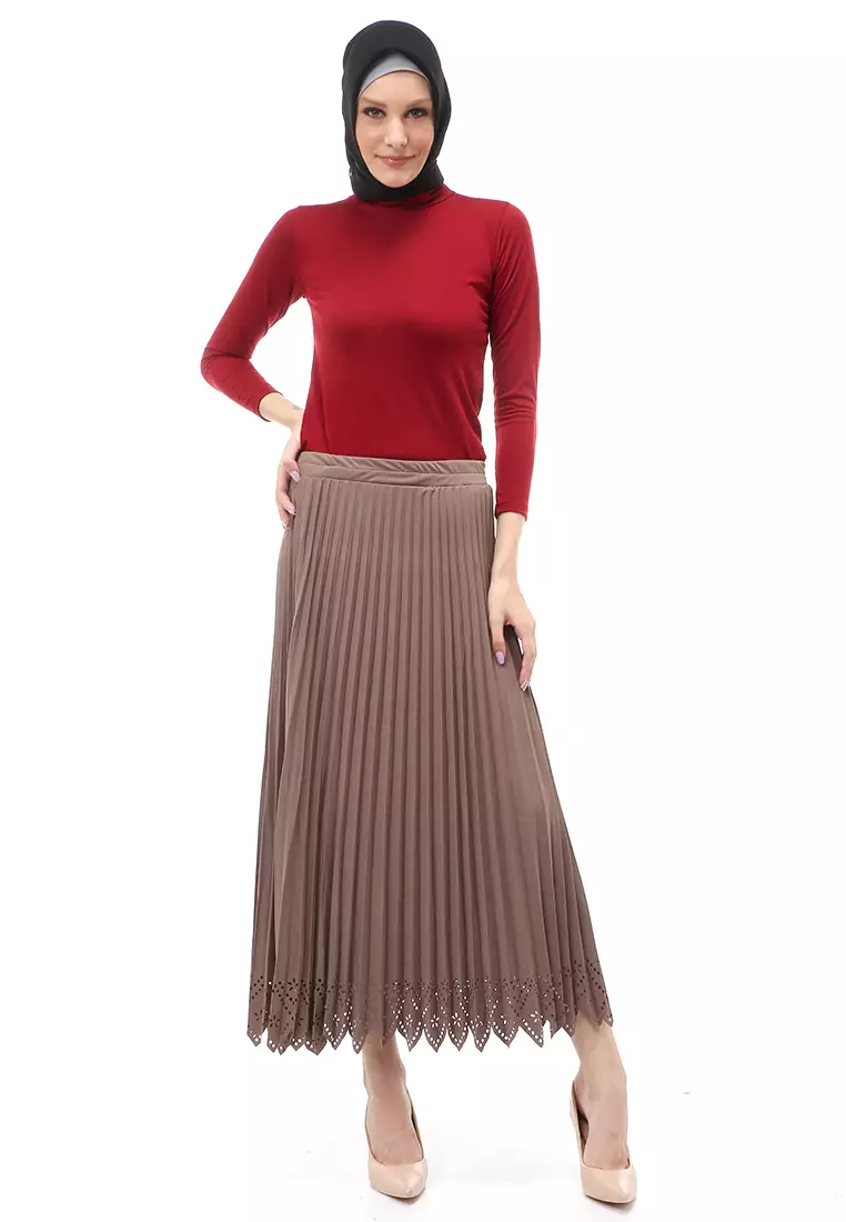 Syafira Rok Plisket Laser Polos Bawahan Wanita Muslimah Premium Quality - Mocca