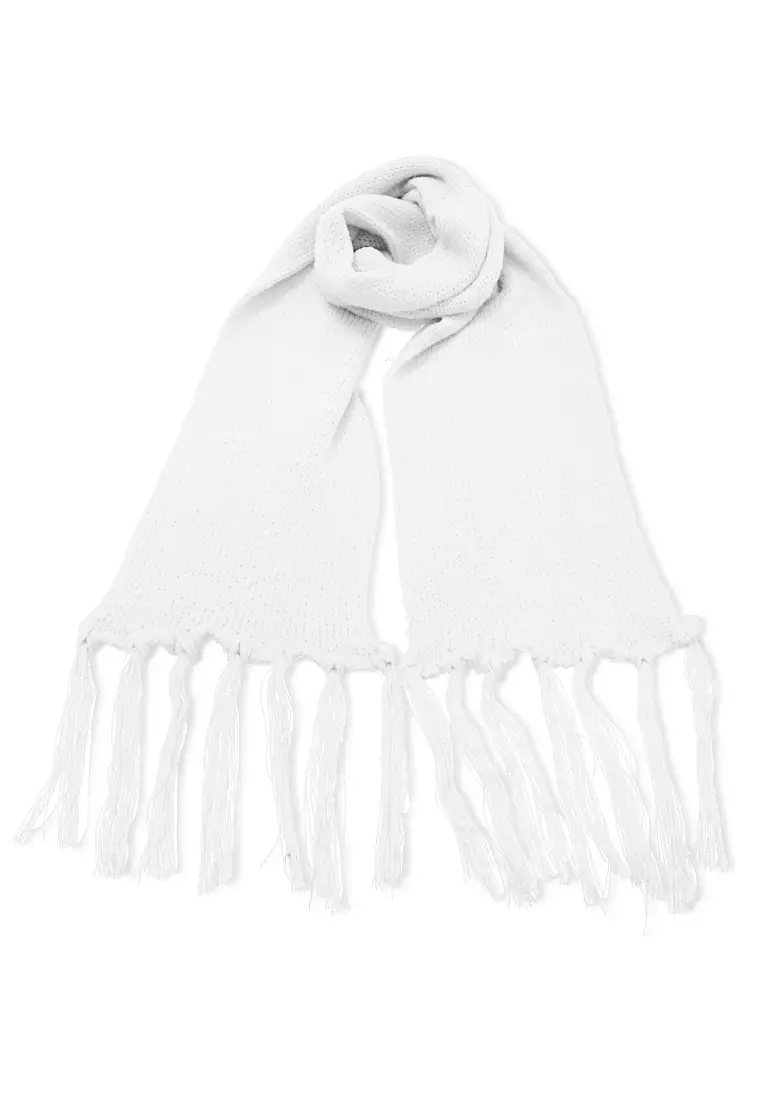 Syal Wanita Motif Polos Aksen Rumbai Shawl Rajut Lembut Fashion Women - Putih