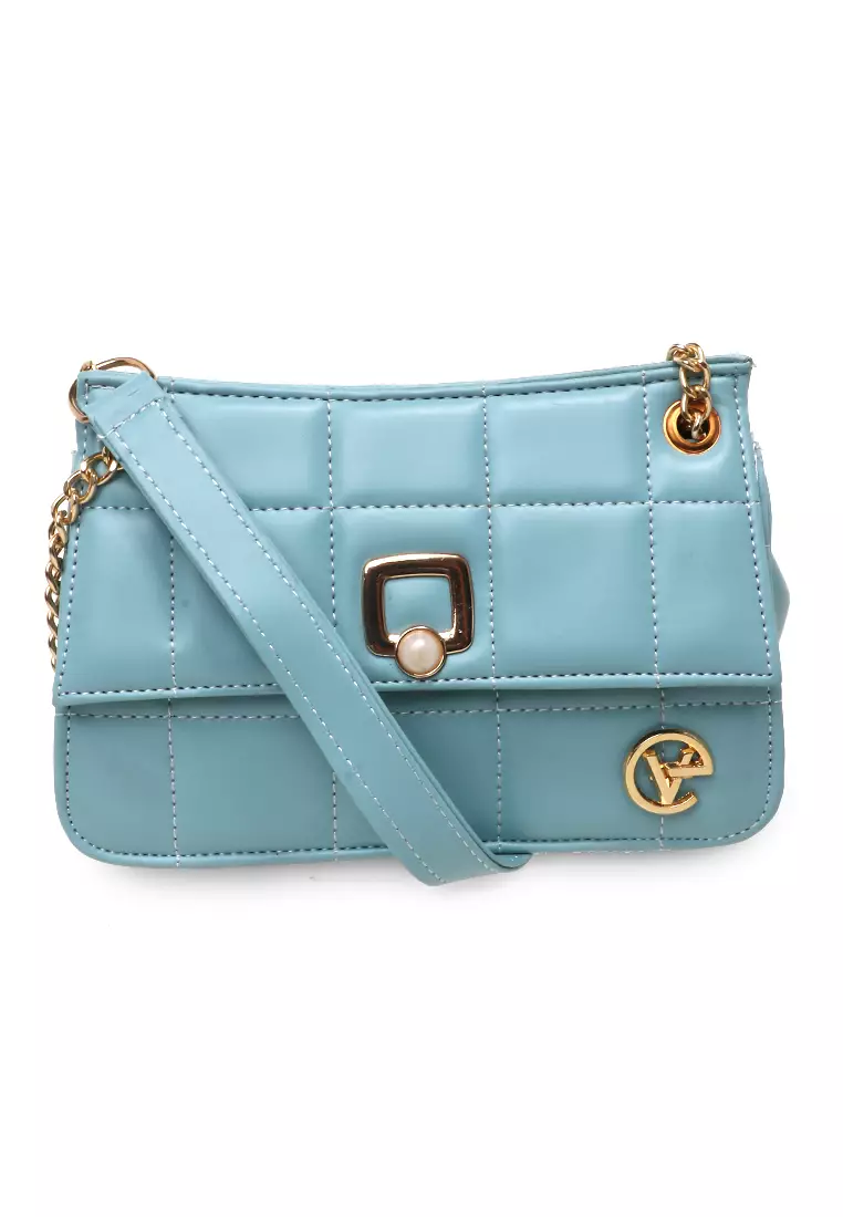 Trisha Slingbags Wanita Motif Kotak-Kotak Design Pastel - Ice Blue