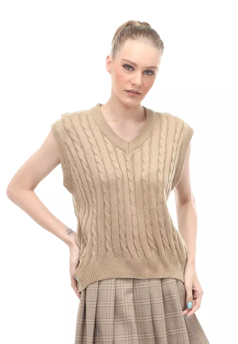 EvernoonUrice Vest Rajut Atasan Wanita V-neck Sleeves Design Elegant- Khaki472000.00188000.00