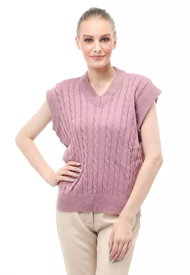 Urice Vest Rajut Atasan Wanita V-neck Sleeves Design Elegant - Lavender