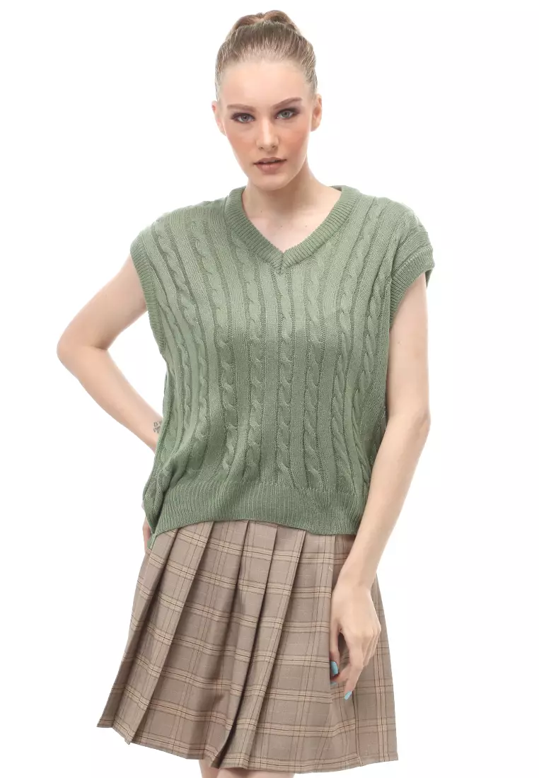EvernoonUrice Vest Rajut Atasan Wanita V-neck Sleeves Design Elegant - Matcha472000.00188000.00
