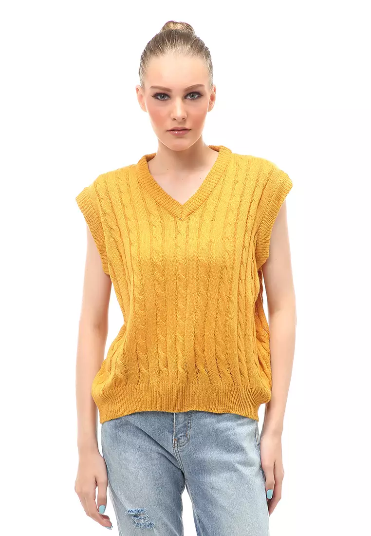 Urice Vest Rajut Atasan Wanita V-neck Sleeves Design Elegant - Mustard