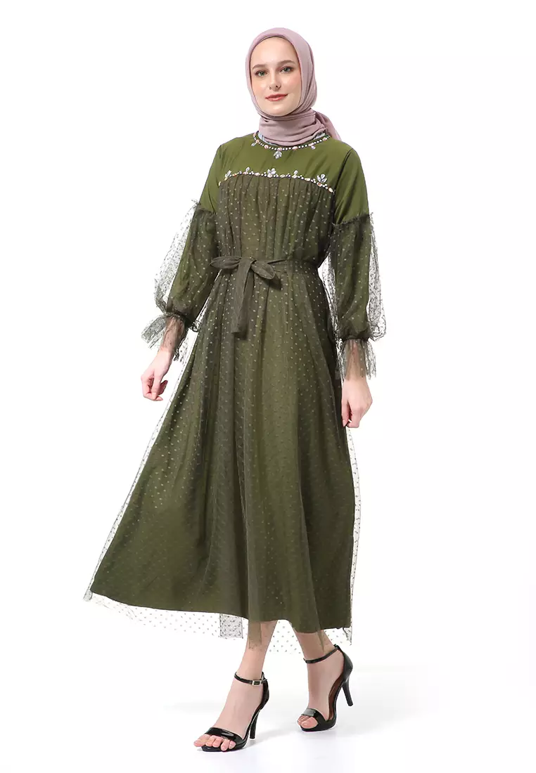 EvernoonVarsha Dress Wanita Long Sleeve Motif Polos Polkadot High Quality - Army1444000.00577000.00