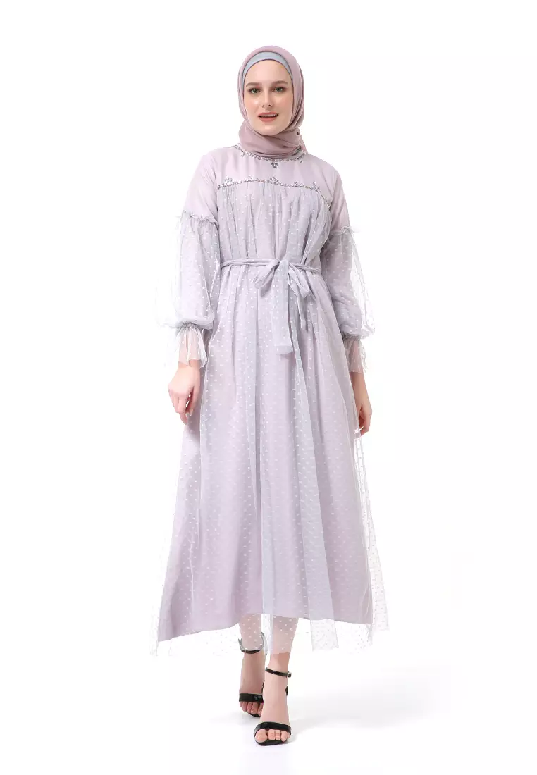 EvernoonVarsha Dress Wanita Long Sleeve Motif Polos Polkadot High Quality - Silver Mauve1444000.00577000.00