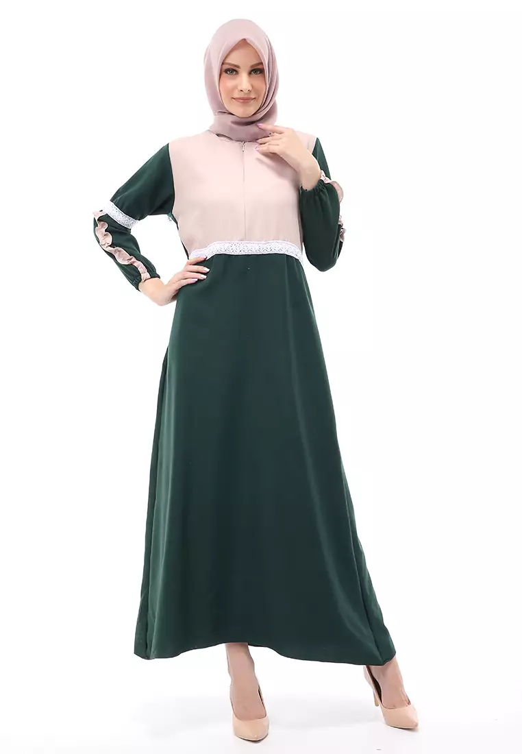 EvernoonVelicia Gamis Muslimah Wanita Motif Polos Long Sleeve Regular Fit - Hijau Botol1000000.00400000.00