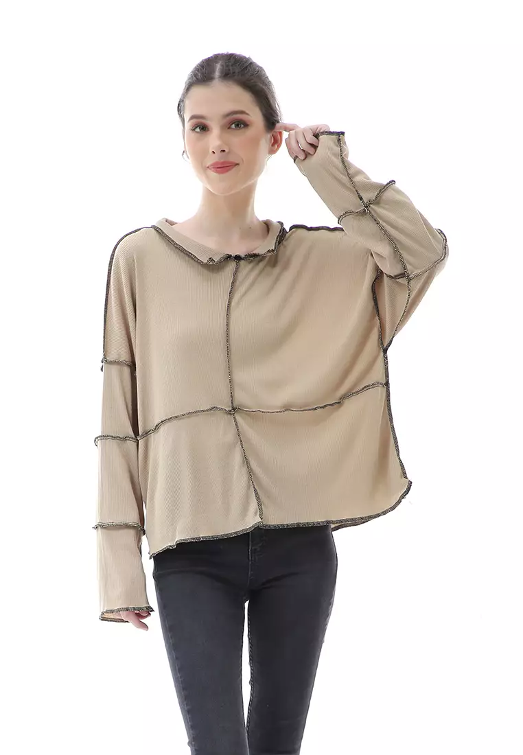 Veronica Blouse Terbalik Relaxed Motif Polos Long Sleeve Premium Quality - Cream