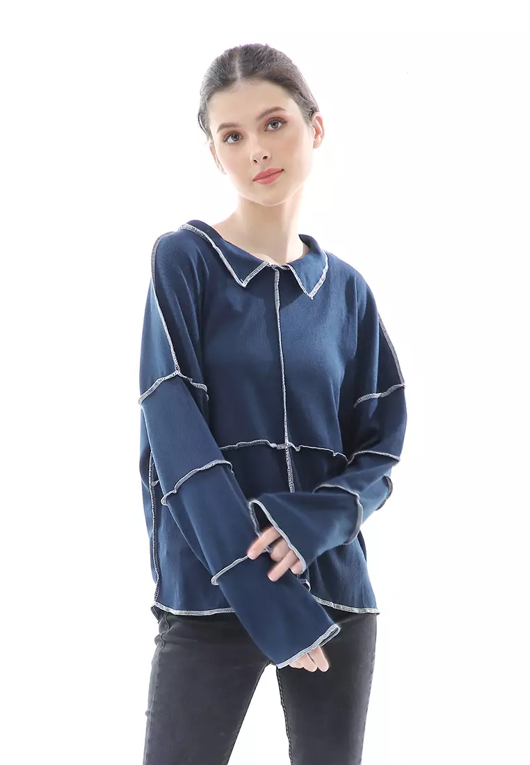 EvernoonVeronica Blouse Terbalik Relaxed Motif Polos Long Sleeve Premium Quality - Navy477000.00190000.00