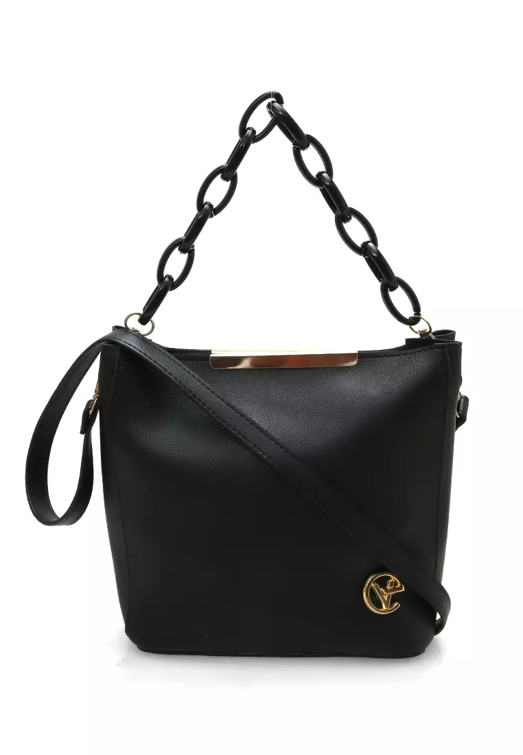 Viona Sling Bag Wanita Remaja Rantai Premium Polos - Black