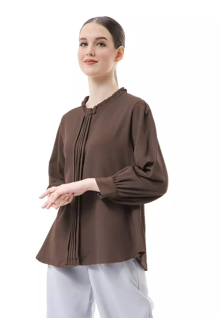 Vionka Kemeja Atasan Wanita Opnaisel Motif Polos - Brown