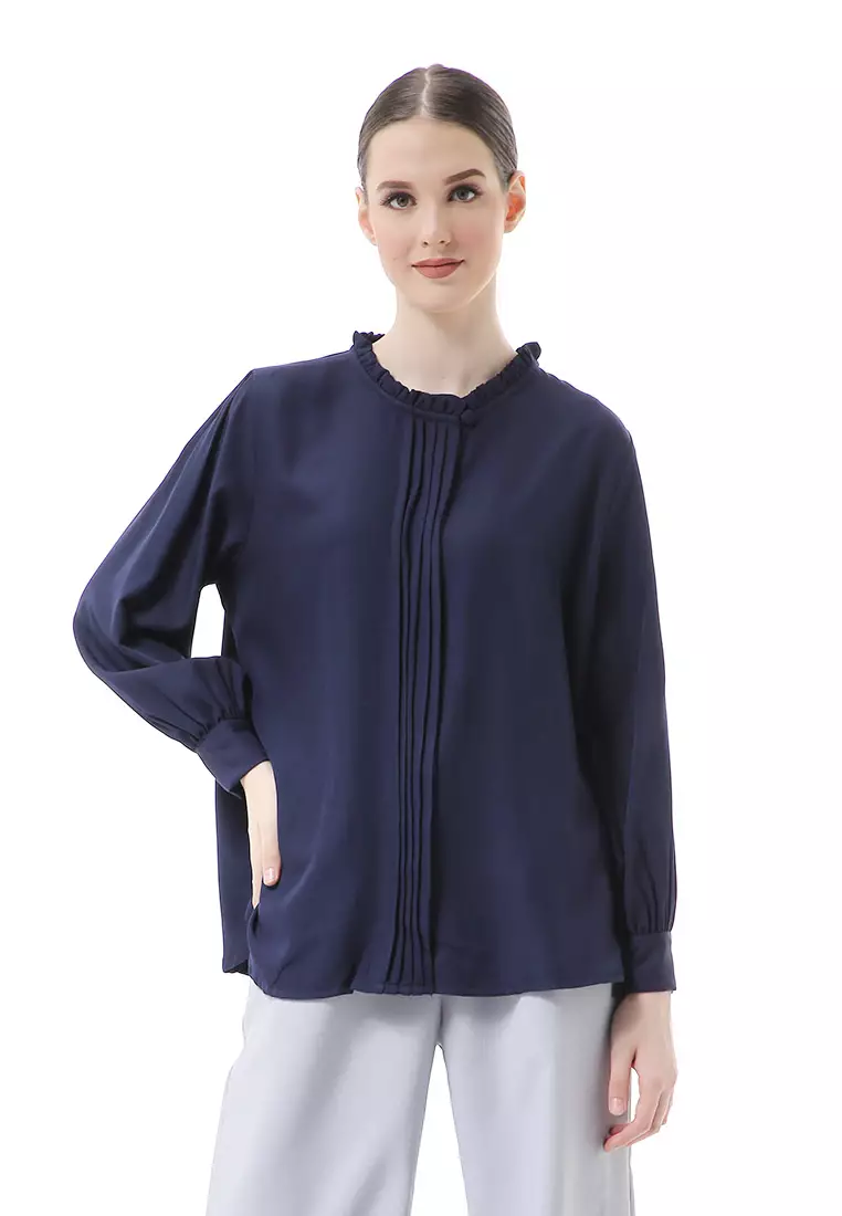 Vionka Kemeja Atasan Wanita Opnaisel Motif Polos - Navy