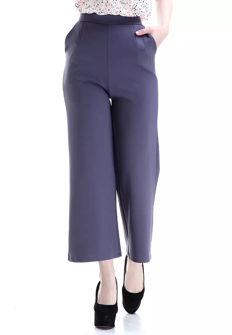 Xana Celana Kulot Bawahan Wanita Motif Solid Design Simple Woman - Grey