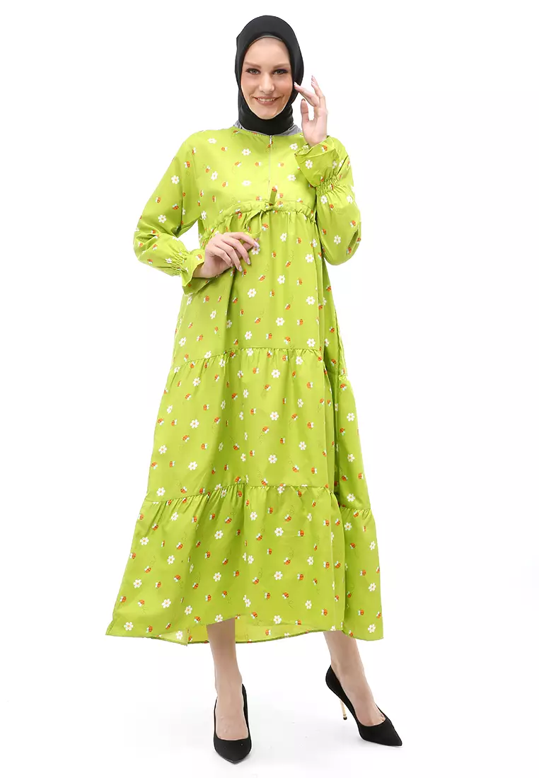 EvernoonZahra Gamis Muslimah Wanita Motif Bee Long Sleeve Comfortable To Wear - Green1640000.00656000.00
