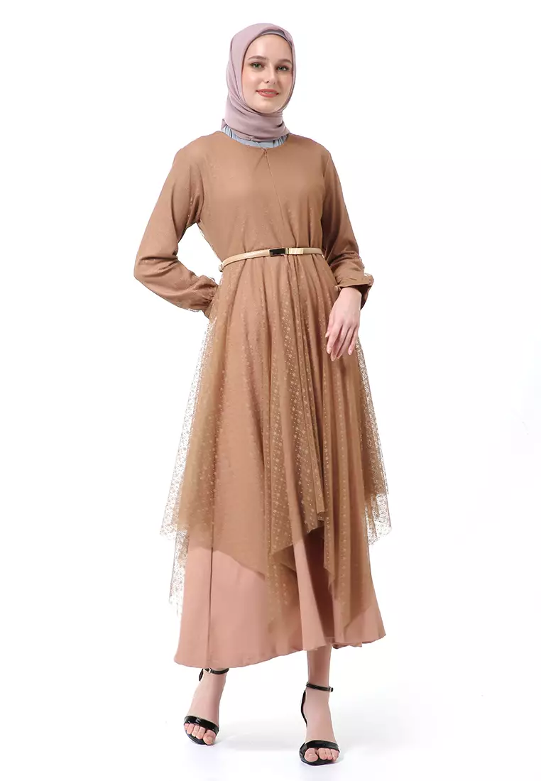 EvernoonZahwa Long Dress Gamis Muslimah Long Sleeve Free Belt High Quality - Brown2183000.00829000.00