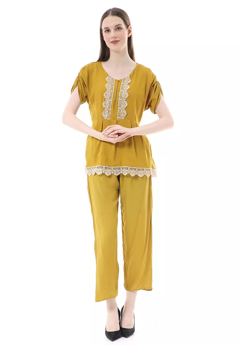 Zemira Piyama One Set Atasan Bawahan Wanita High Quality - Kuning Gold