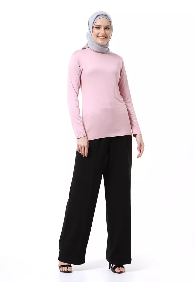 Zlora Manset Atasan Wanita Motif Polos Long Sleeve Reguler Fit - Dusty Pink