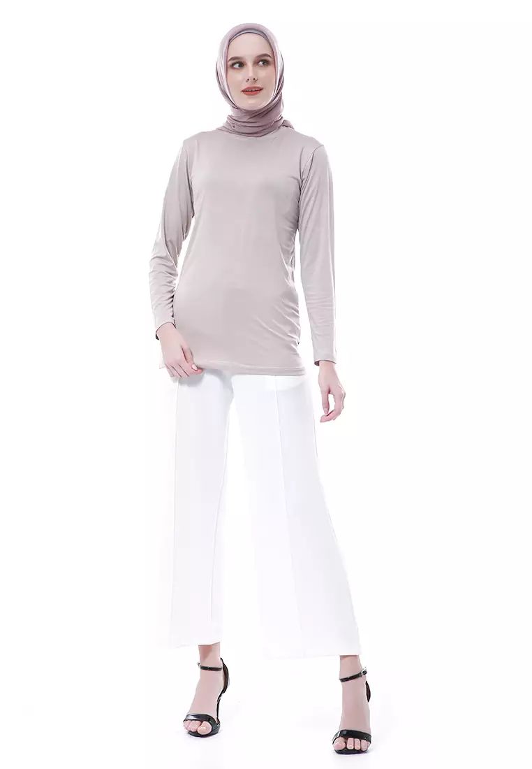 Zlora Manset Atasan Wanita Motif Polos Long Sleeve Reguler Fit - Warm Grey