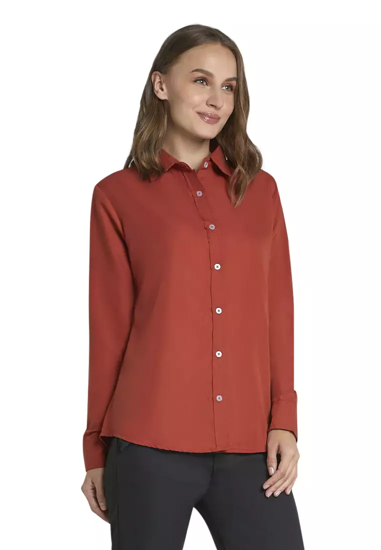 Zwetta Kemeja Lengan Panjang Plain Shirt Basic Atasan Wanita Regular Fit - Teracotta