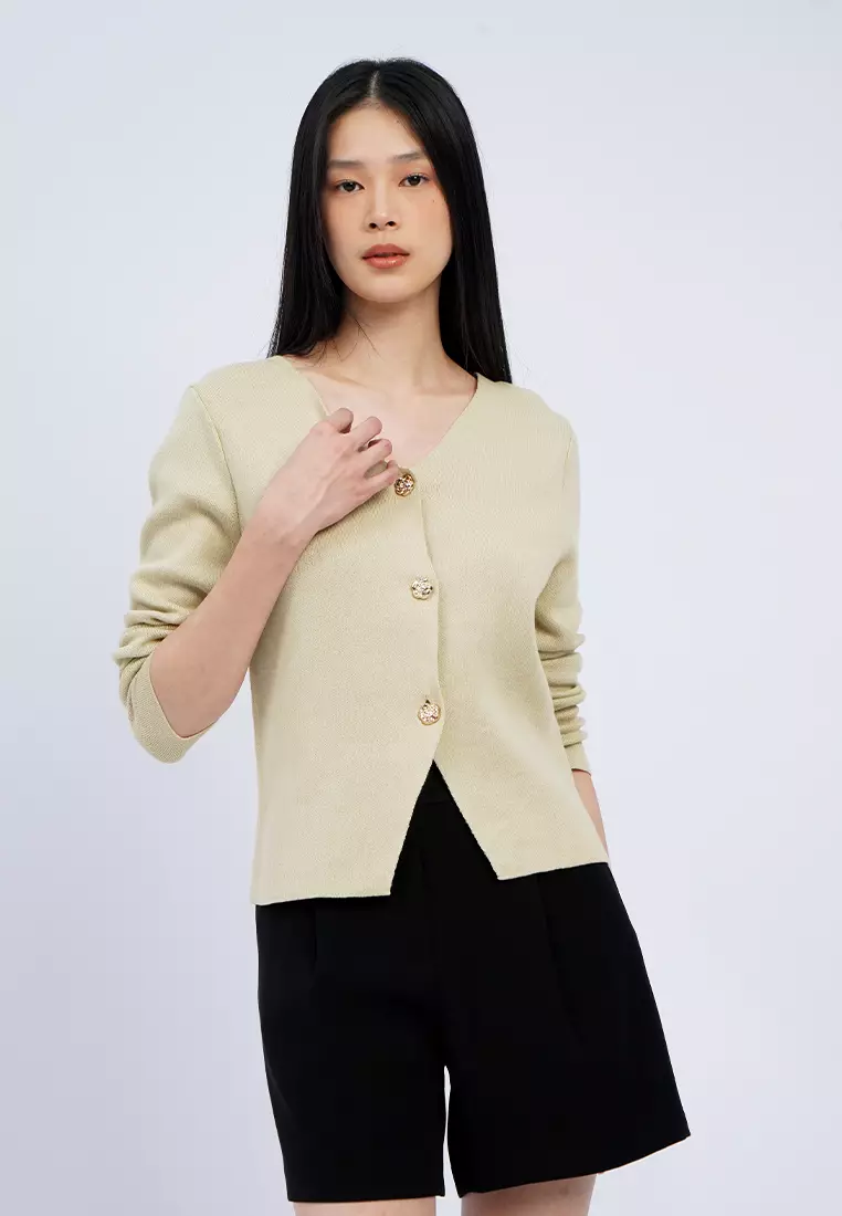 Contrast Button V-Neck Cardigan
