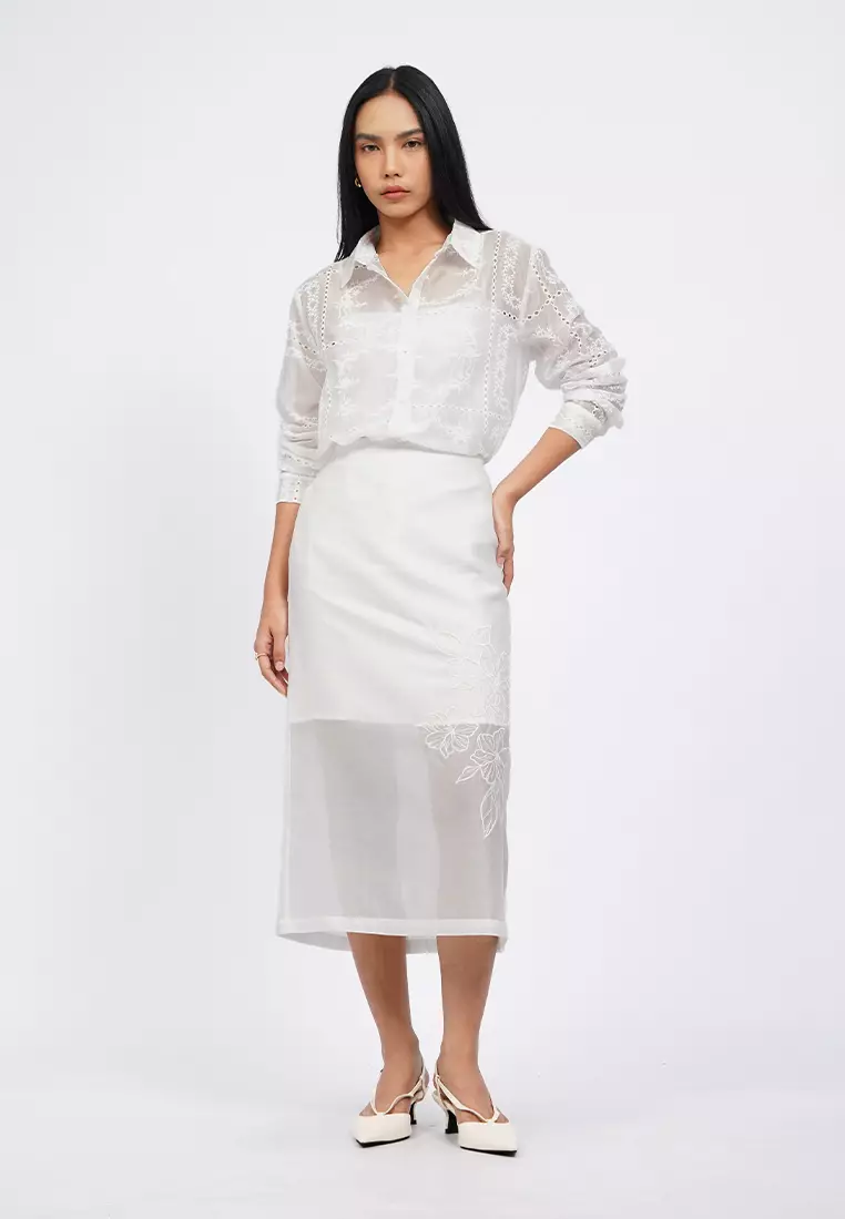 Embroidered Sheer Midi Skirt