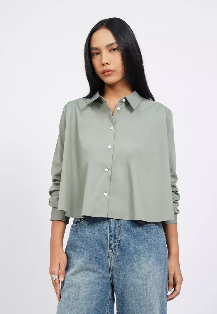 Long Sleeve Crop Flare Shirt