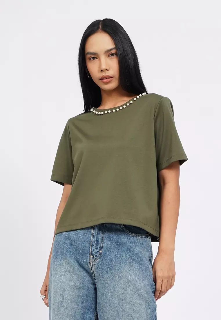 Short Sleeve Top with Pearl Details