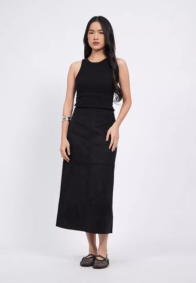 Textured A-Line Midi Skirt