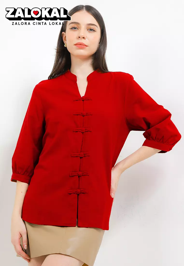 - Leher: Kerah Mandarin