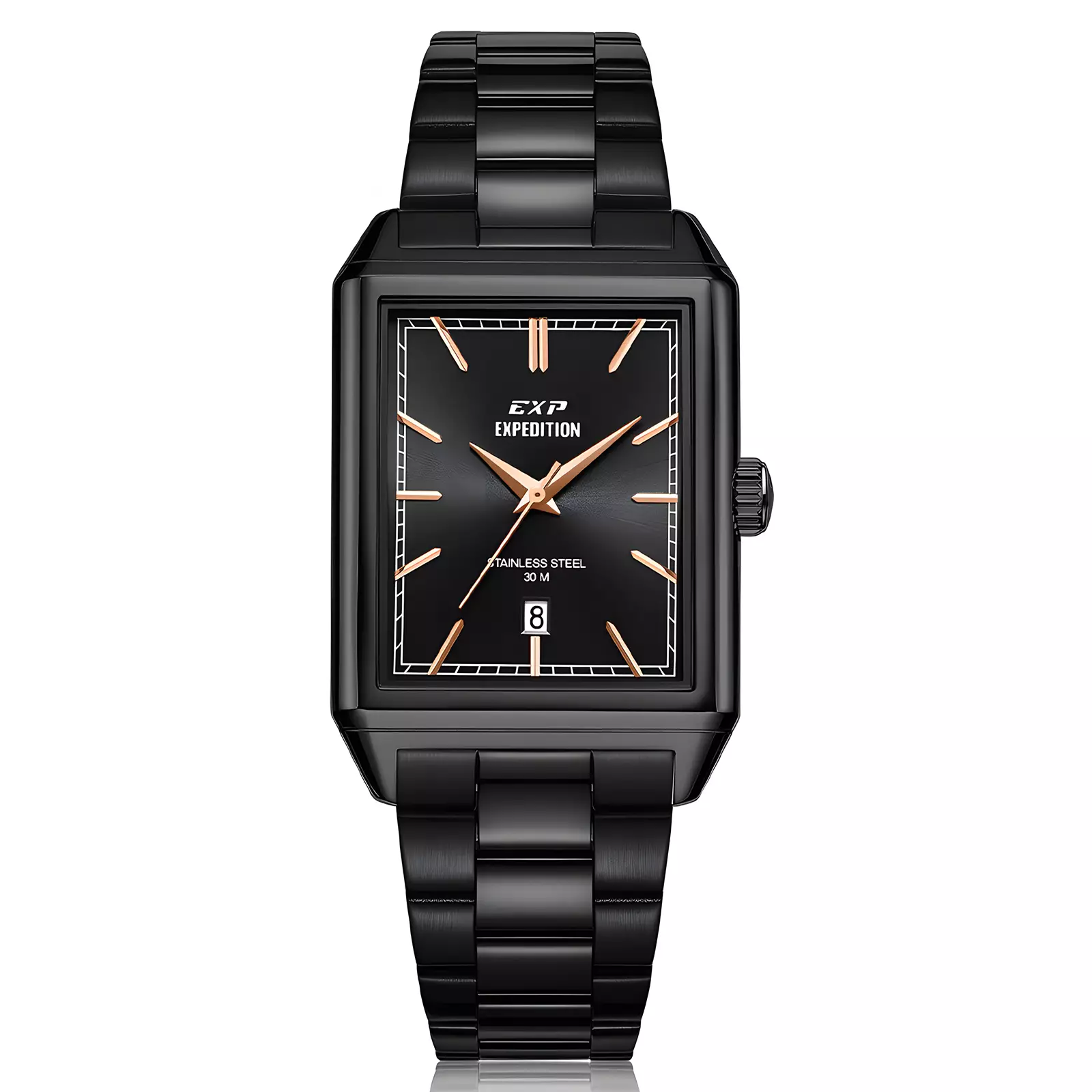 EXP Expedition - Jam Tangan Analog Pria - Classic Pair Collection - Black Rose Gold - All Stainless Steel - 6866 MDBIPBARG