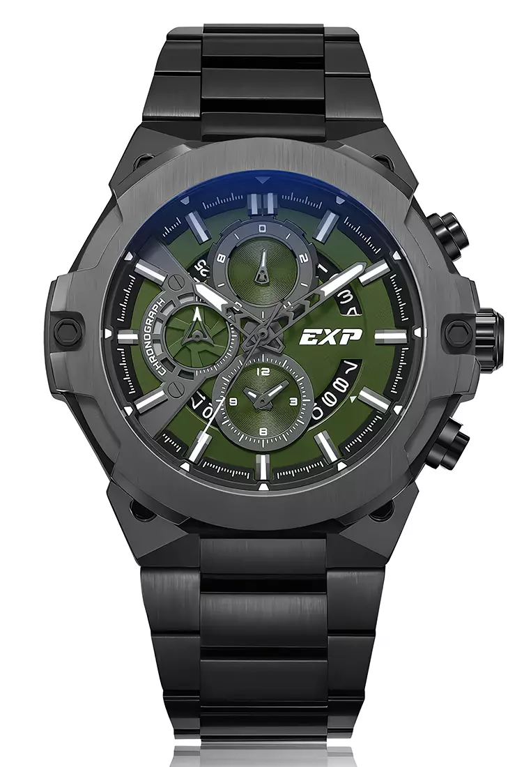 Expedition EXP - Jam Tangan Chronograph Pria - Black Case Green Dial Stainless Steel - 6838 MCBIGGN
