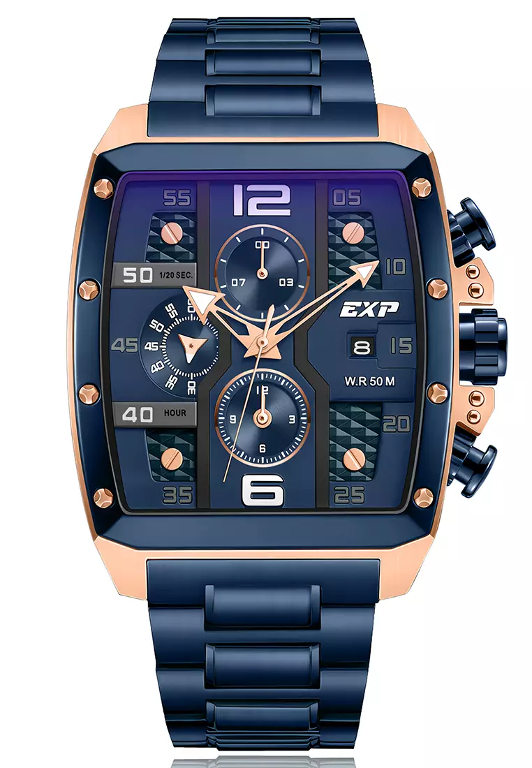 Expedition EXP - Jam Tangan Chronograph Pria - Rosegold Case Blue Dial - Stainless Steel - 6636BCBURBU