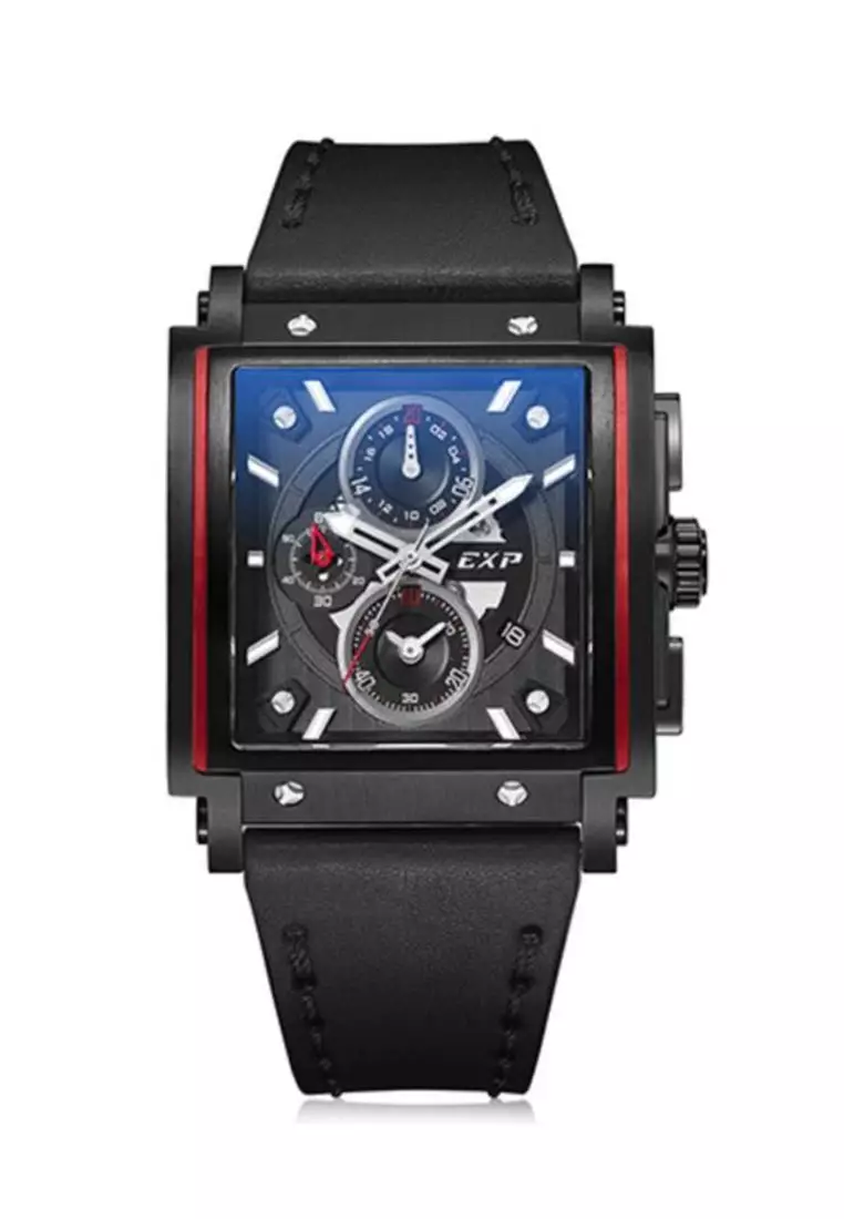 Expedition Jam Tangan Pria - Black Red - Leather Strap - 6731 GCLIPBARE