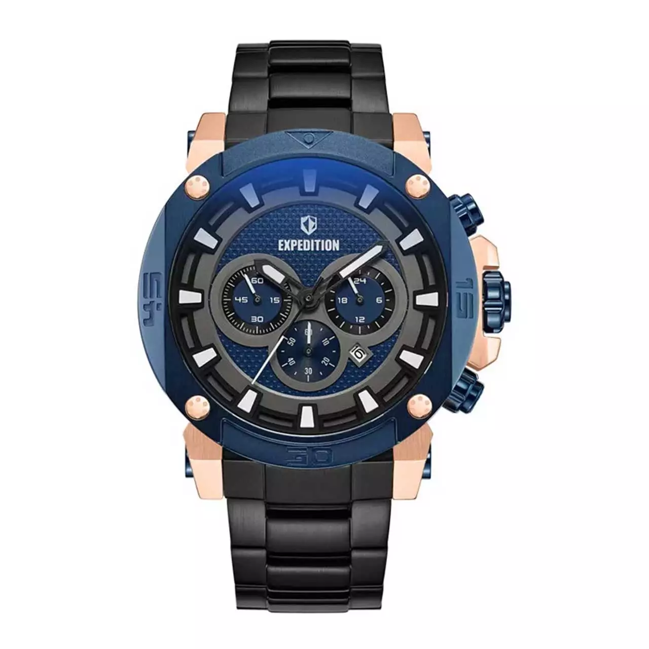 Expedition Jam Tangan Pria - Black Rosegold Navy - Stainless Steel - 6606 MCBURBABU