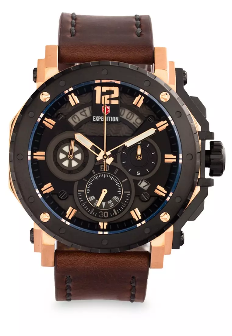 Expedition Jam Tangan Pria - Brown Black Rosegold - Leather Strap - 6402 MCLBRBA