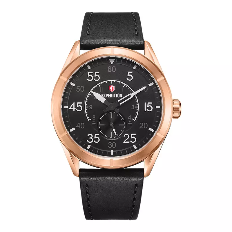 Jam Tangan Pria Expedition Chronograph E 6832 MS LRGBA Men Black Dial Black Leather Strap