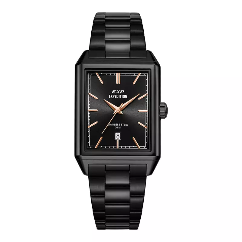 Jam Tangan Pria Expedition E 6866 MD BIPBARG Men Black Dial Black Stainless Steel Strap