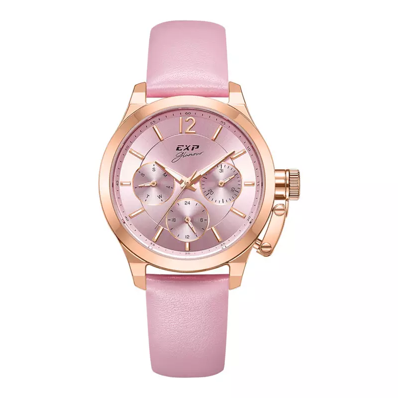 Jam Tangan Wanita Expedition Glamour E 6381 BF LRGPN Ladies Pink Dial Pink Leather Strap